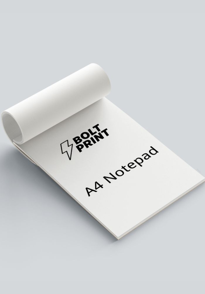 Introducing Bolt Print's premium A4 Notepads, perfect for those who appreciate the blend of form and function. A versatile choice for professionals and businesses alike, our notepads offer a seamless platform for note-taking, sketching, and jotting down ideas. Each page is crafted to deliver a polished writing experience, transforming the mundane into something extraordinary.